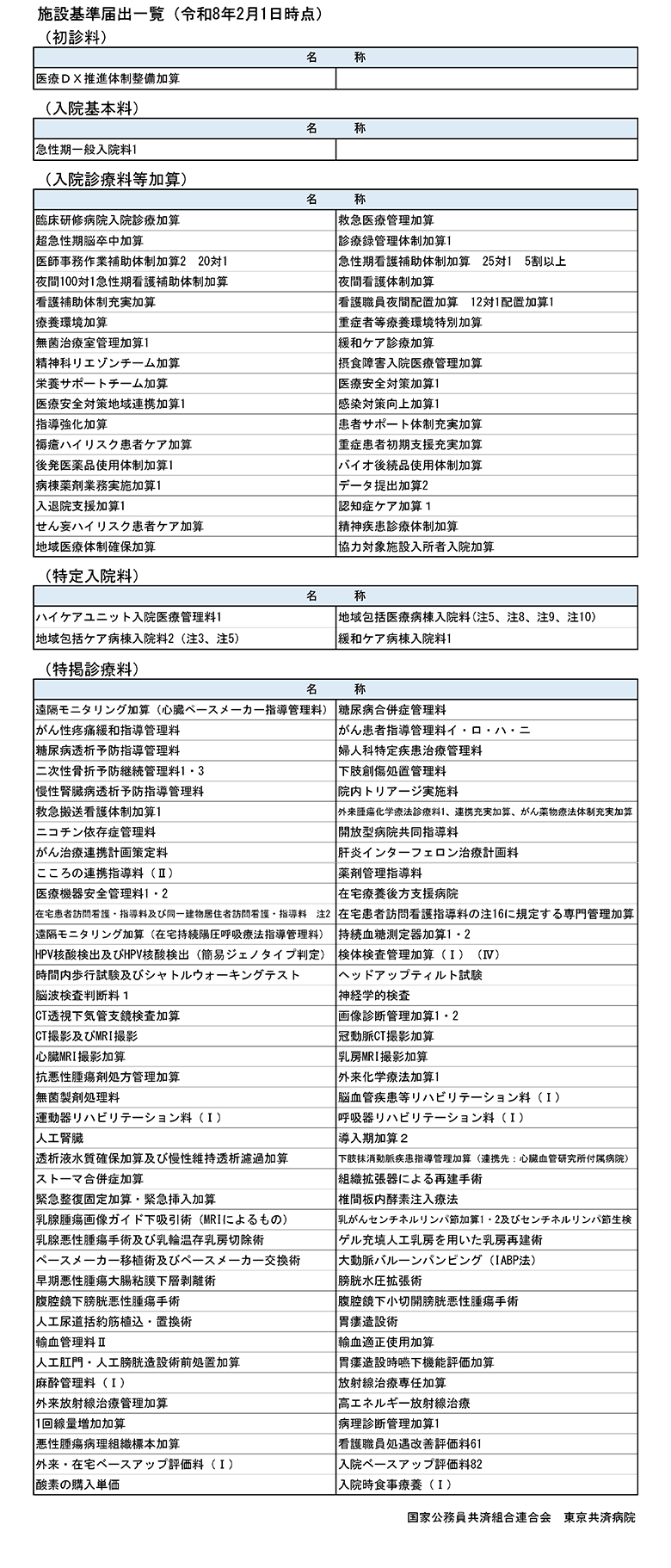 【施設基準届出一覧】
